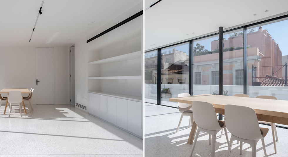 The architectural concept reflects a synthesis of elements from the Modern Movement of the 1930s throughout, while maintaining the character and minimalist design of a contemporary exhibition space within. Windows that extend vertically across the full height of the building’s exterior create a welcoming atmosphere between its bold presence and its peripheral environment, while windows that scale multiple floors of the interior invite visitors to experience its various levels and their individual functions as a kind of vertical open plan.